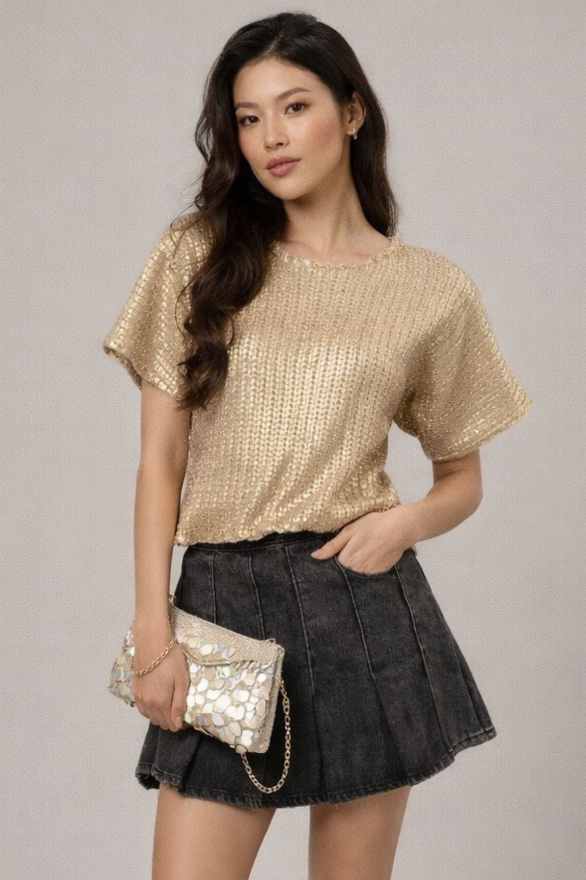 Let the charm of puffy short sleeves enhance your style with laid-back sophistication in this versatile piece.