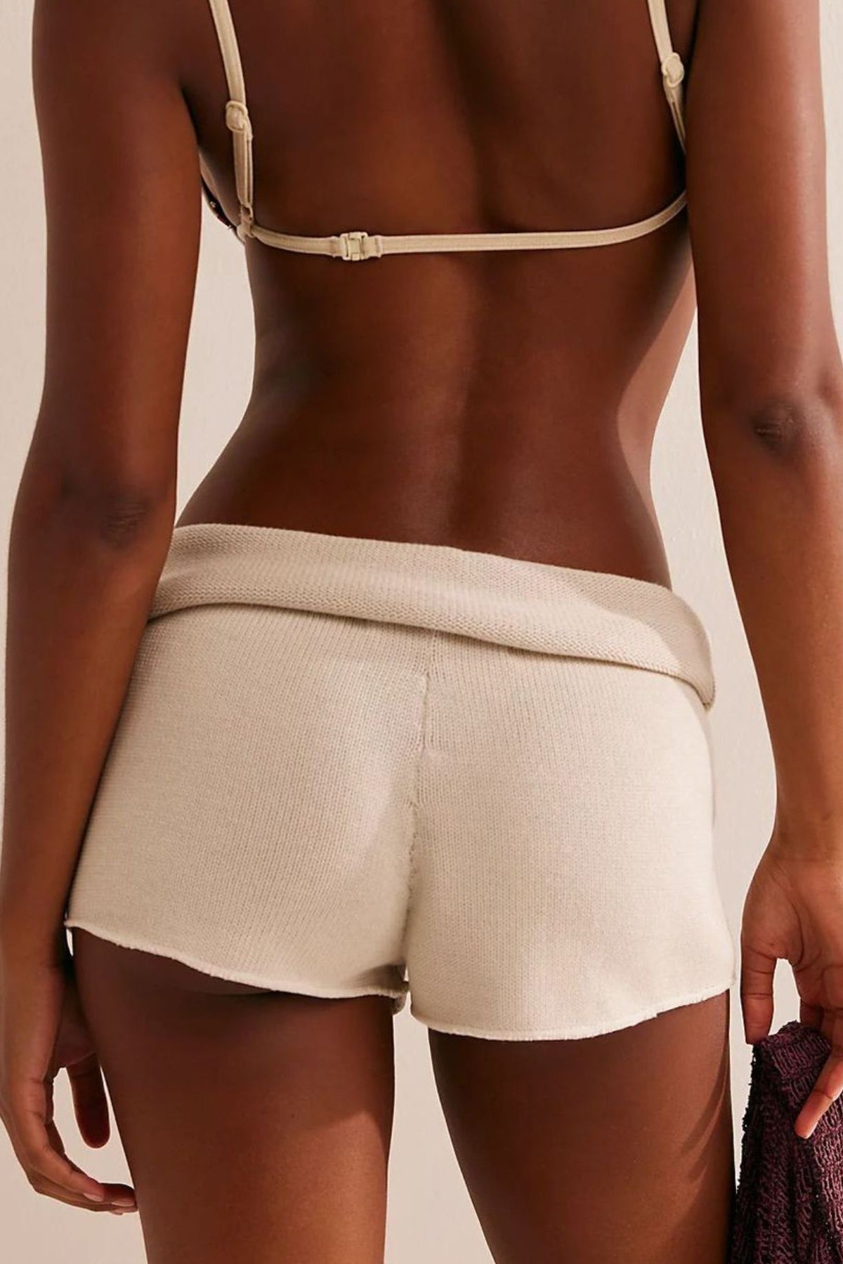 Casual Knitted Shorts with Long Waistband feature stretchy knit fabric and an extended waistband design that provides comfortable coverage and flattering support. The soft knitted material feels great against your skin while the longer waistband creates a unique silhouette that sits beautifully on your hips. Perfect for lounging, casual outings, or warm weather days when you want shorts that feel cozy and look stylishly different.