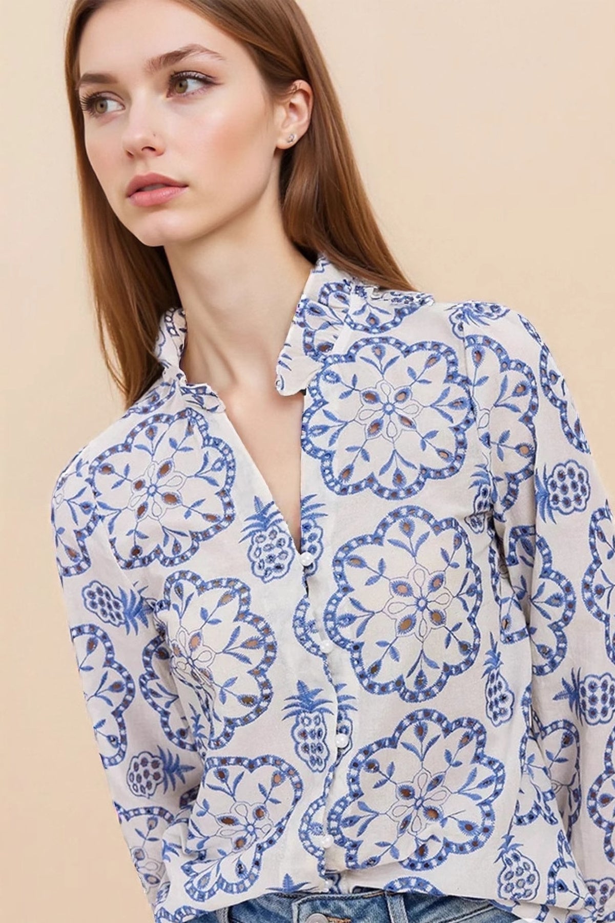 Eyelet Embroidered Long Sleeve Shirt