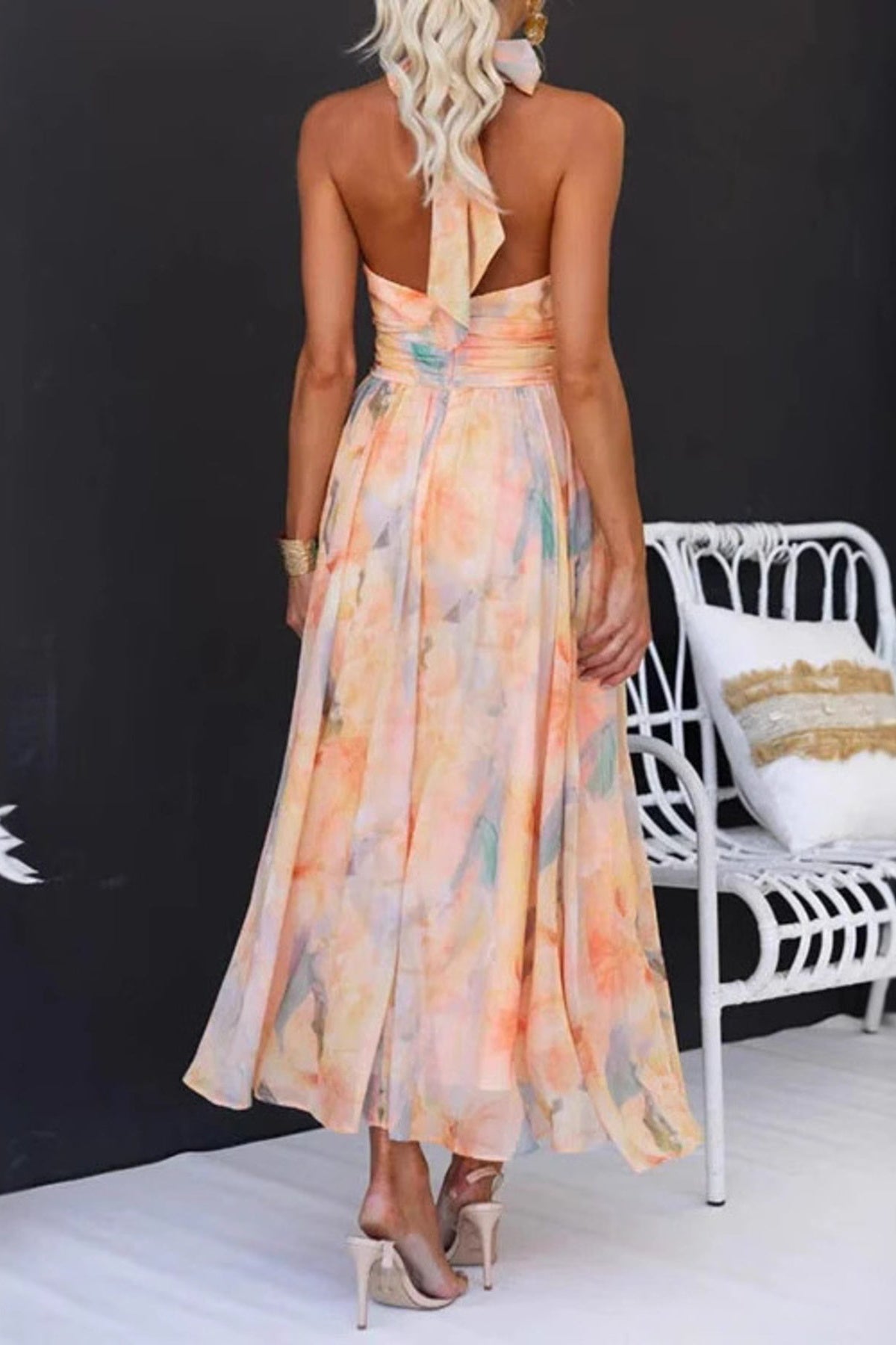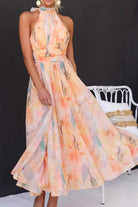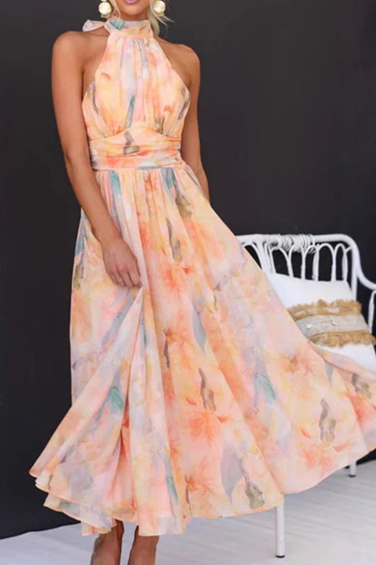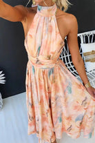 Floral Halter Neck Summer Dress showcases beautiful blooms across lightweight fabric with a flattering halter neckline that keeps you cool in warm weather. The tied halter design provides adjustable support while the flowing silhouette moves gracefully with summer breezes. Perfect for picnics, outdoor concerts, or vacation days when you want to feel fresh, feminine, and ready for sunny adventures.