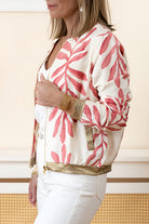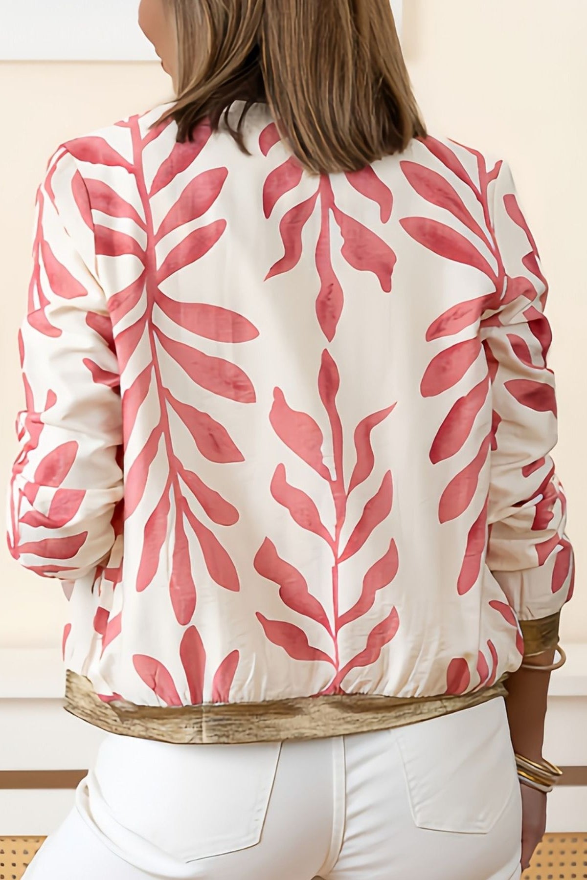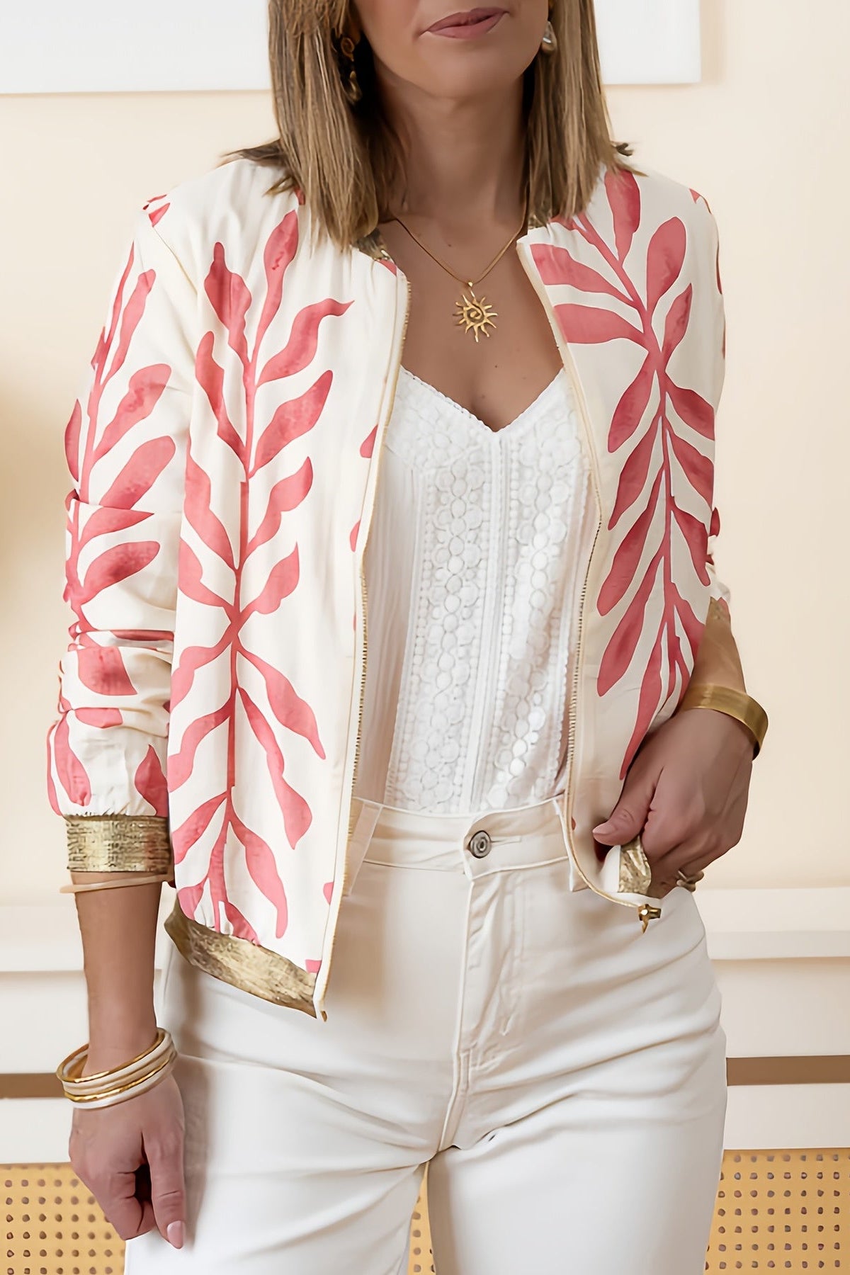 Floral Leaf Pattern with Gold Trim Zip Up Jacket