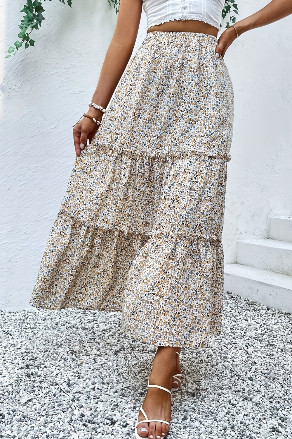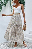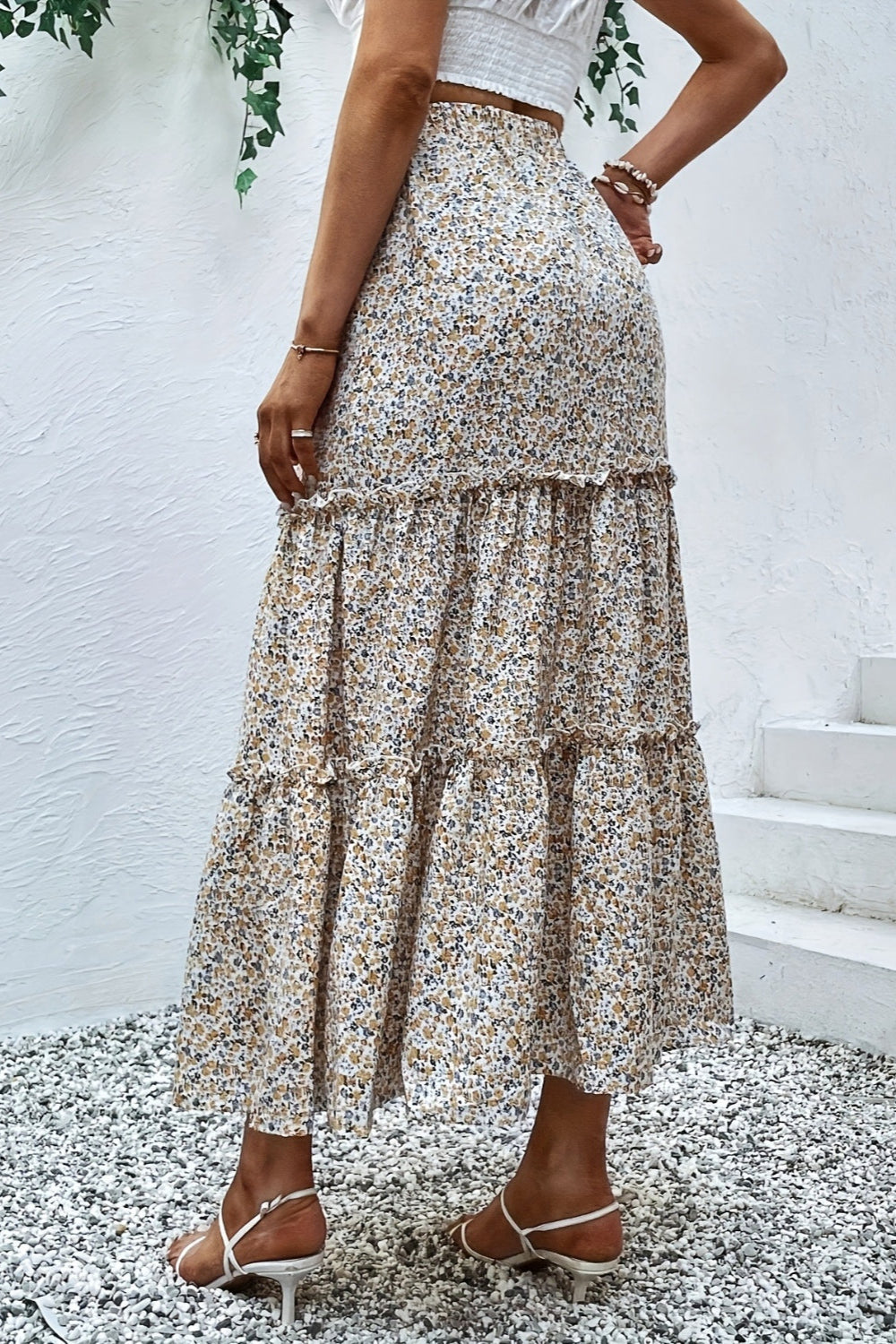 Frill Tiered Maxi Skirt creates dramatic movement with multiple layers of ruffled fabric that flow beautifully with every step you take. The tiered construction provides volume and texture while the maxi length offers elegant coverage that feels graceful and feminine. Perfect for bohemian looks, summer festivals, or romantic occasions when you want to feel like you're floating on air.