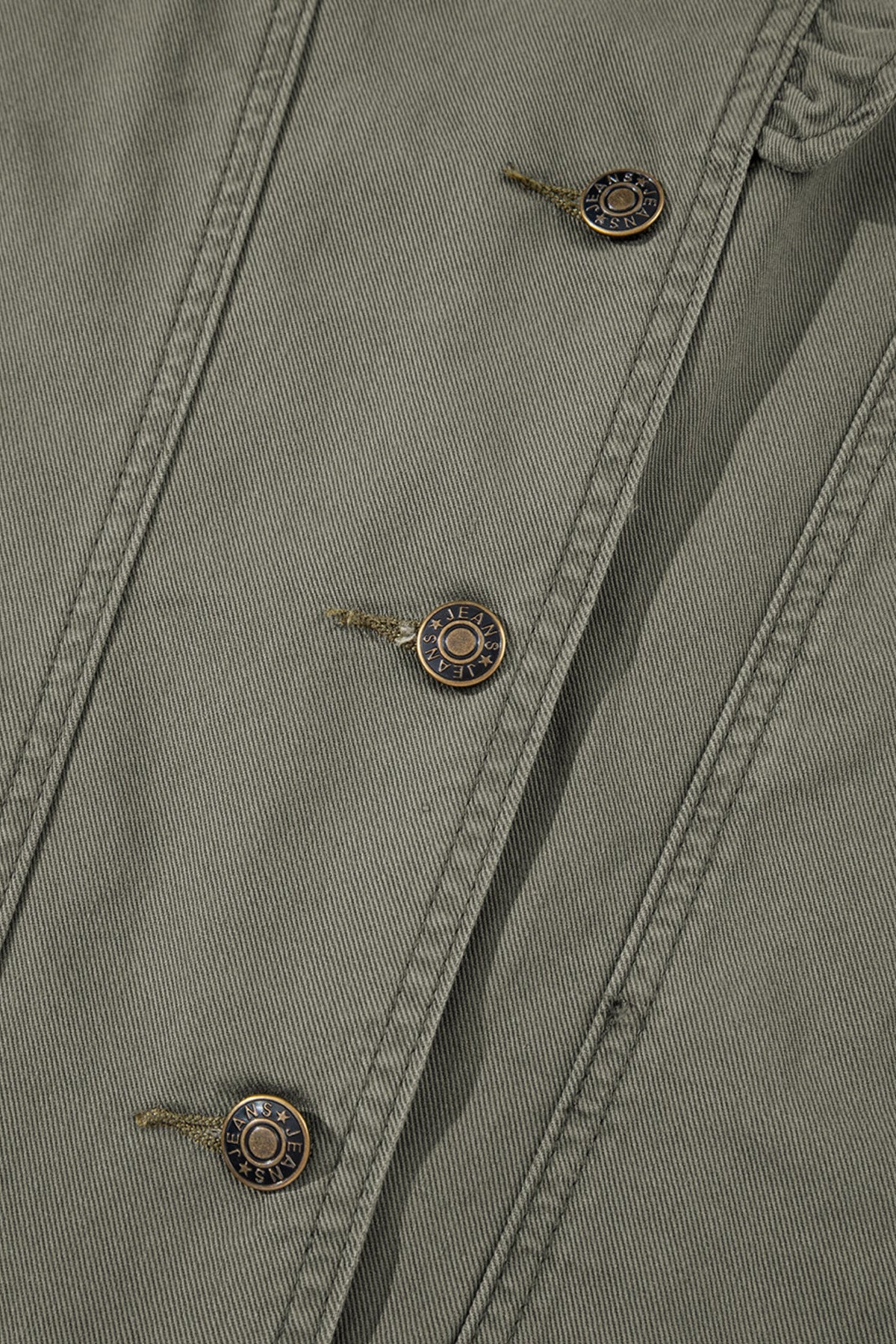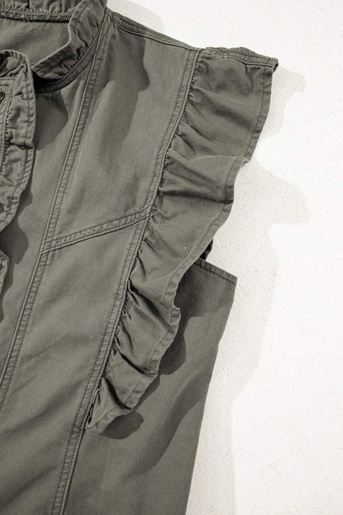 Ruffled Patchwork Denim Jacket Vest combines feminine ruffle detailing with unique patchwork construction and sleeveless vest styling for eclectic, bohemian-inspired layering appeal. The mixed denim patches create artistic interest while the decorative ruffles soften the structured vest silhouette beautifully. Perfect for festival wear, creative styling, or when you want outerwear that celebrates handcrafted artistry with playful, one-of-a-kind charm and personality.