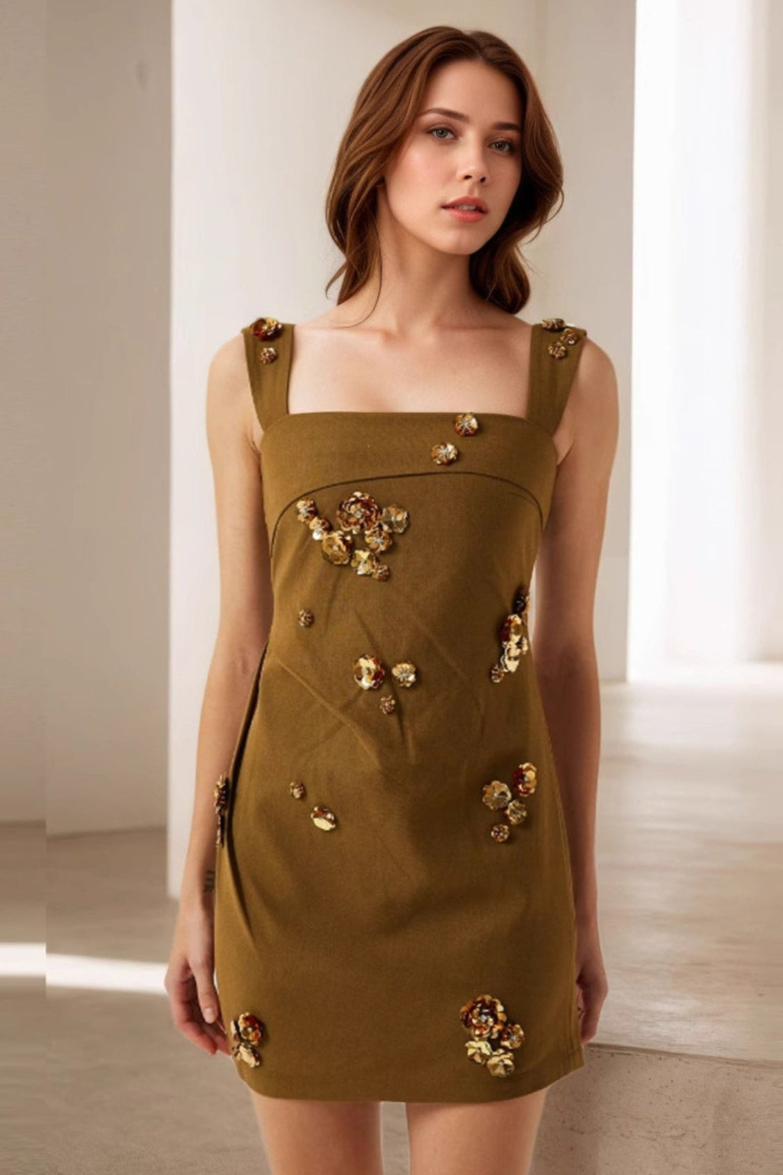 Square Neck Embellished Mini Dress features a flattering square neckline adorned with sparkling embellishments that catch light beautifully across the fitted mini silhouette. The structured square neck creates elegant lines while the decorative details make this dress perfect for parties and special events. Ideal for nights out, celebrations, or any occasion when you want to shine with glamorous style and confident sophistication.