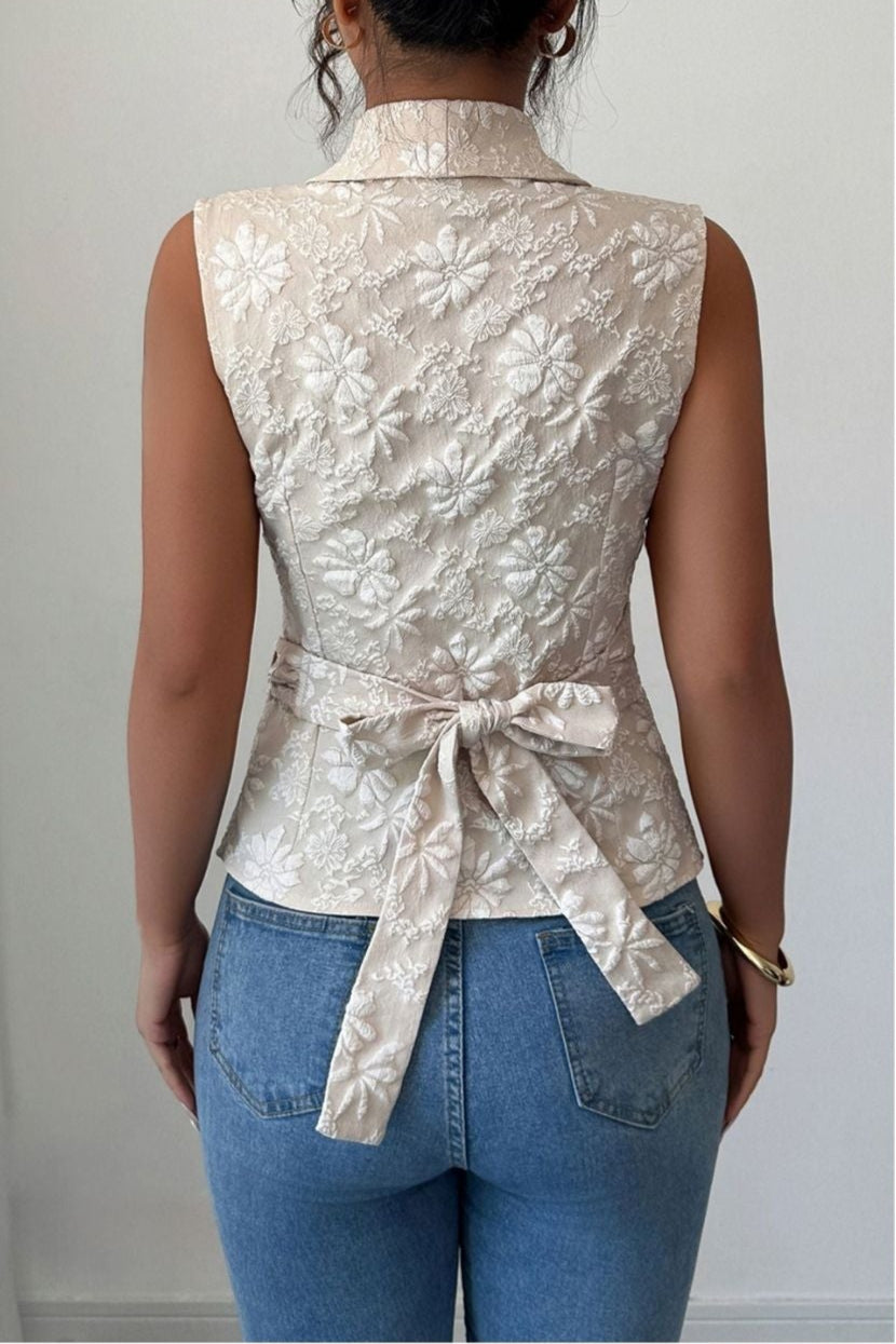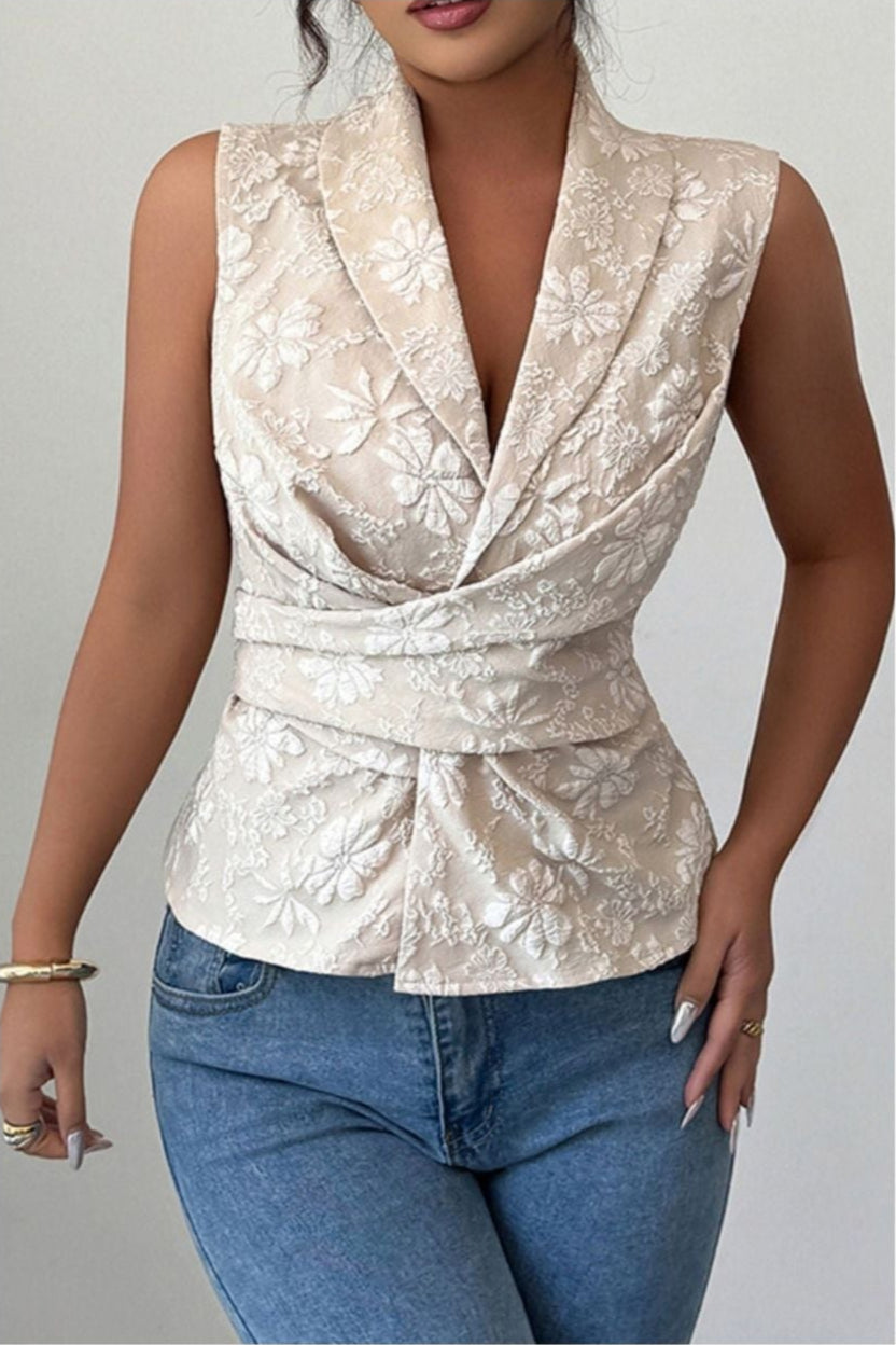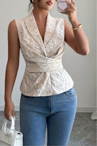 Wrap Waist Sleeveless Top features an adjustable wrap design that creates a flattering waistline while the sleeveless cut keeps you cool and comfortable. The tie closure allows you to customize the fit perfectly while the flowing fabric drapes beautifully over your figure. Perfect for warm weather styling, office wear, or casual outings when you want a polished look that feels effortless and feminine.