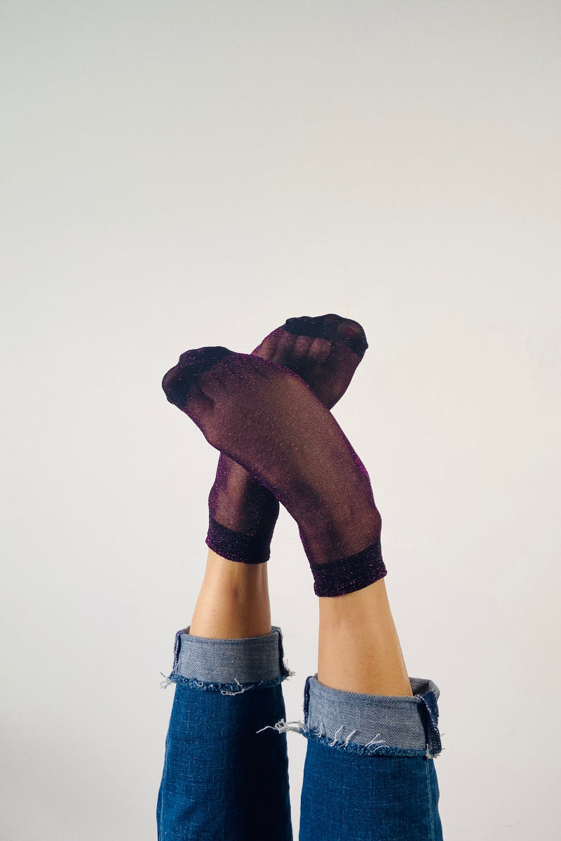 Add some sparkle to your step with the Léa Pack of Fine Glitter Socks! This trendy set includes six pairs of glittery ankle socks that bring a hint of shimmer to any outfit. Perfect for dressing up casual looks or adding a playful edge to formal attire, each pair combines comfort with a dash of glamour.