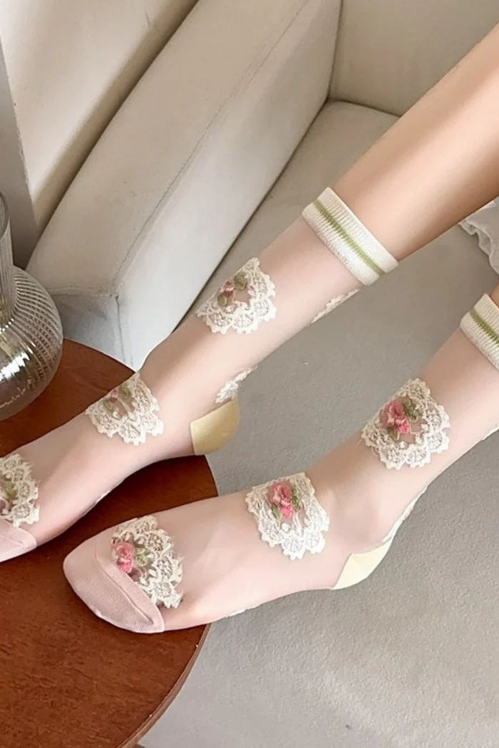 Summer Floral Pattern Sheer Socks offer a graceful and airy look, perfect for warmer days. The floral details provide a stylish accent, while the breathable sheer fabric keeps your feet feeling fresh. Pair them with your favorite footwear for a chic upgrade.