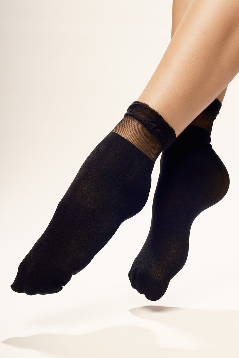 Sheer Ruffle Tulle Sock features delicate transparent tulle fabric with romantic ruffle detailing that creates dreamy, feminine appeal with lightweight, airy construction. The sheer material feels elegant while the soft ruffles provide texture and vintage-inspired charm reminiscent of ballet styling. Perfect for special occasions, dressy outfits, or when you want hosiery that feels like wearable romance with ethereal beauty and delicate, fairy-tale appeal.