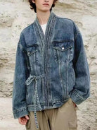 Washed Tied Long Sleeve Denim Jacket features soft, broken-in denim fabric with unique tie details that create customizable styling and feminine flair. The washed finish gives it a lived-in comfort while the tie elements make this jacket feel fresh and modern rather than ordinary. Perfect for layering over dresses, casual outfits, or when you want classic denim with a unique twist that sets you apart.
