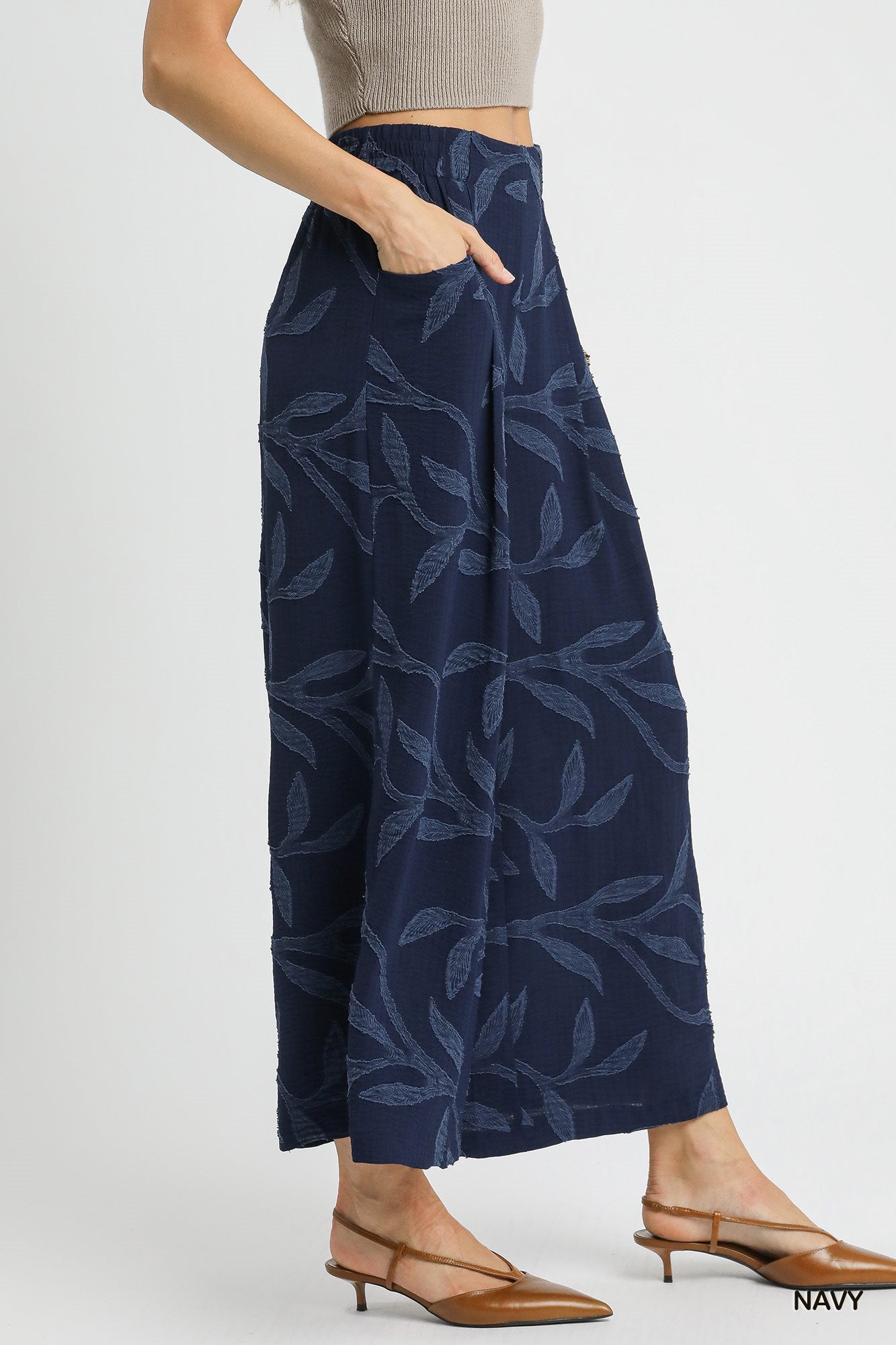 The Jacquard wide-leg pants are a chic and sophisticated choice for a polished and on-trend look. The Jacquard fabric features intricate patterns woven into the cloth, adding texture and visual interest to the pants. The wide-leg silhouette offers a flowy and elegant drape that elongates the legs and creates a flattering silhouette. These pants are versatile and can be dressed up or down for various occasions. Pair them with a fitted top and heels for a sophisticated ensemble, or dress them down with a casual tee and sneakers for a more relaxed look.
