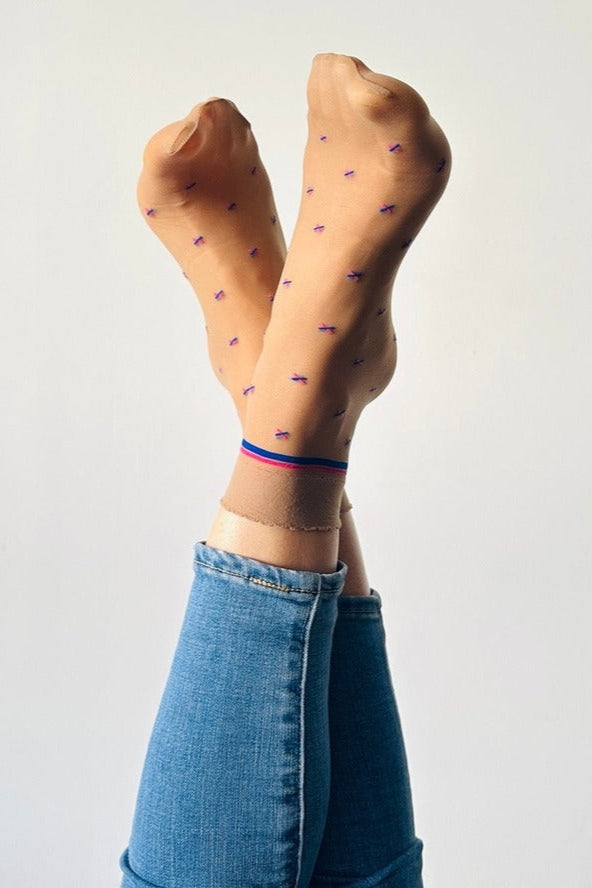 The Alba Sheer Socks bring a light, feminine touch to your wardrobe. Their sheer construction adds airy comfort, while the soft stretch ensures a snug yet gentle fit. Great for everyday wear or special occasions.