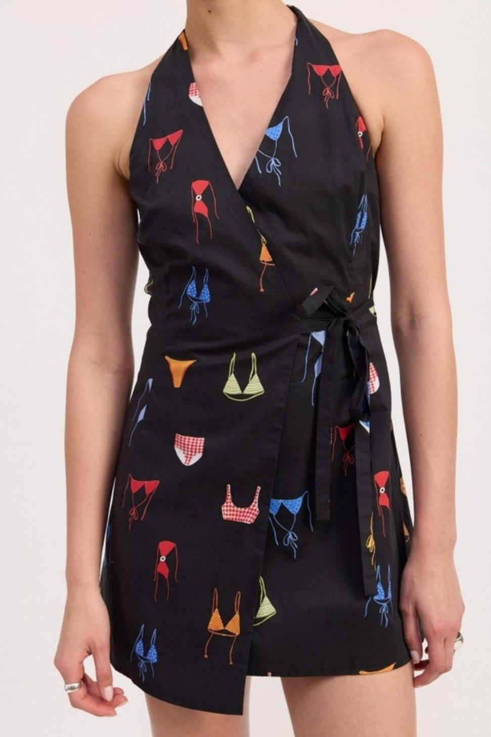 Halter Wrap Mini Dress features a flattering halter neckline that flows into a chic wrap design for a feminine, figure-hugging silhouette. The adjustable ties at the waist create a custom fit while the mini length shows off your legs beautifully. Perfect for date nights, summer parties, or weekend brunches when you want to look effortlessly stunning and feel confident.