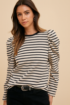 Striped Puff Sleeve French Terry Top