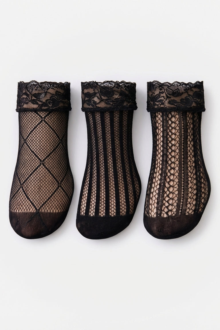 3-Pack Floral Diamond Lace Fishnet Socks