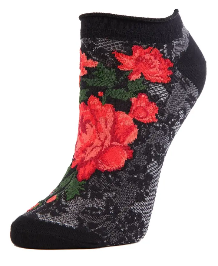 Step into elegance with the Love and Lace Low Cut Floral Socks. These romantic socks combine the delicate charm of lace with a blooming floral design for a feminine touch that’s both beautiful and practical. Reinforced at the toe and heel for added durability, these low-cut socks also feature a rolled cuff for extra comfort. Perfect for adding a dash of timeless romance to any outfit.