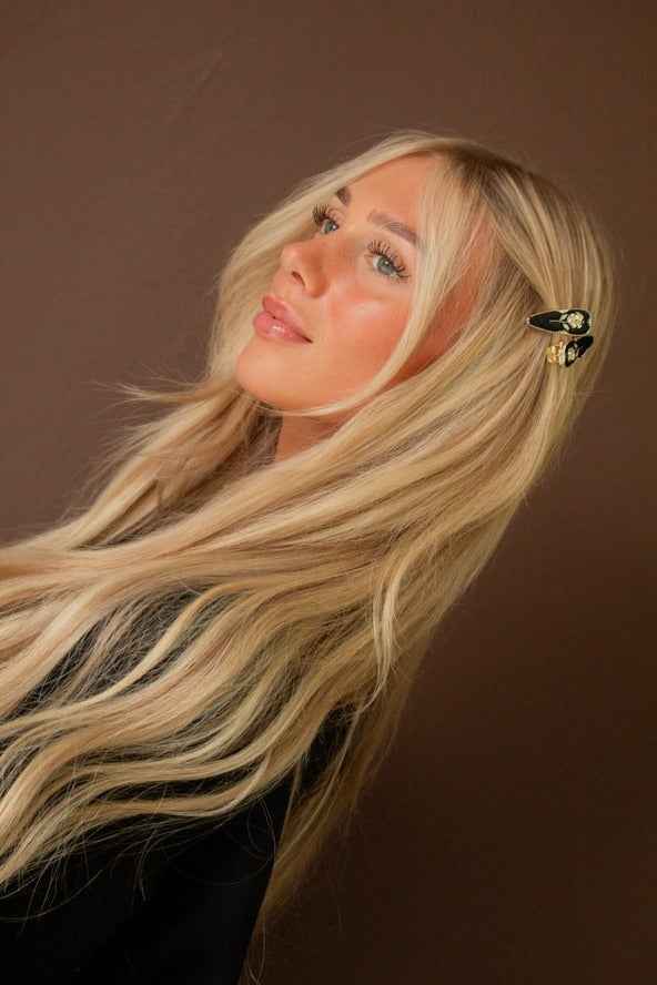 Moody Rose Clips 2-pack features dramatic rose designs in deep, moody tones with secure clip construction that creates romantic gothic appeal across two coordinating pieces. The rich, darker coloring provides mysterious elegance while the rose motifs maintain feminine charm with edgy sophistication. Perfect for creating dramatic hairstyles, special events, or when you want hair accessories that combine floral beauty with brooding, romantic style and versatile pairing options.