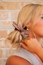This adorable bow scrunchie will be the best addition to your closet this fall! Made with a satin brown scrunchie, featuring a sheer chiffon light brown bow, it has the softest feel and is gentle on your hair. It’s perfect for any hairstyle and adds a cute and elegant touch to every outfit.