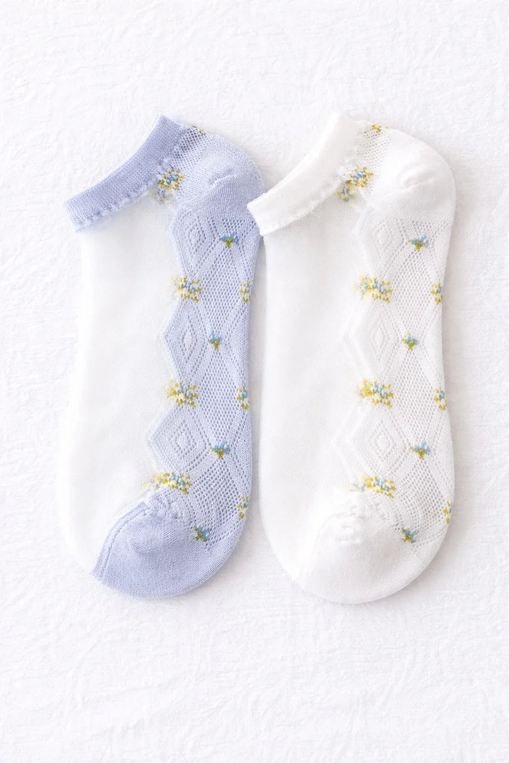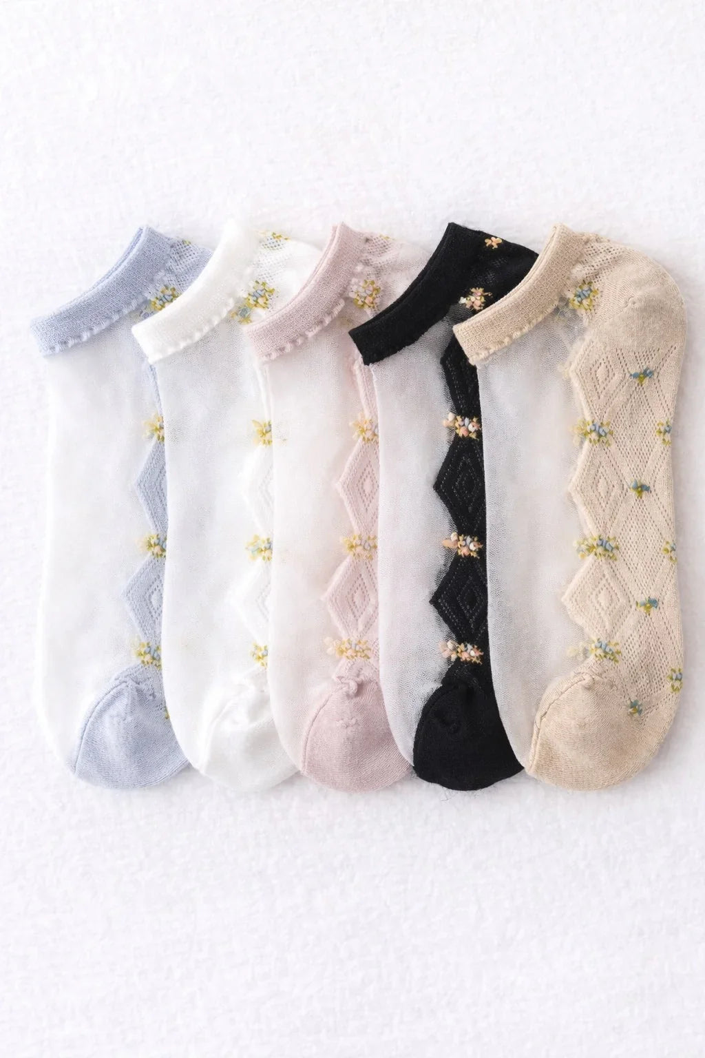 The style is not presented as sheer white ankle socks, but as a floral sheer option with visible detail.