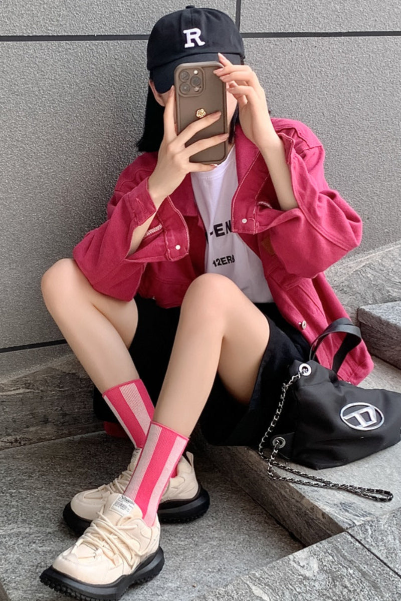 Contrast Striped Crew Socks feature bold color-blocked stripes with comfortable crew height that creates sporty, retro-inspired appeal with soft, breathable fabric. The contrasting stripe patterns make these socks feel playful and energetic while the crew length provides comfortable coverage. Perfect for athletic styling, casual wear, or when you want socks that bring vibrant personality and nostalgic charm to your everyday outfits with eye-catching design.
