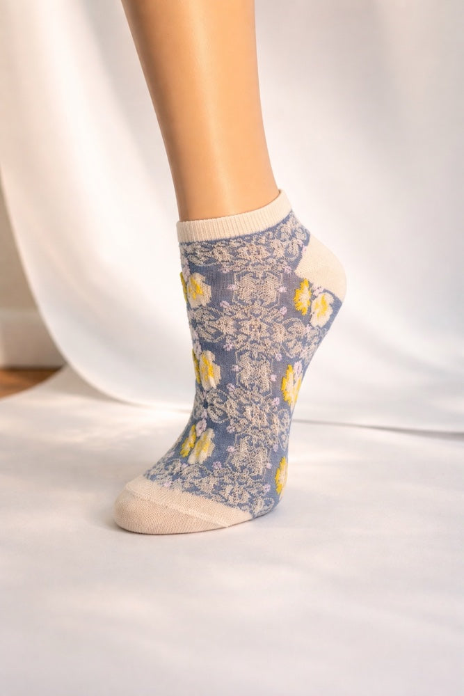 3-Pack Vintage Floral Cable Ankle Socks