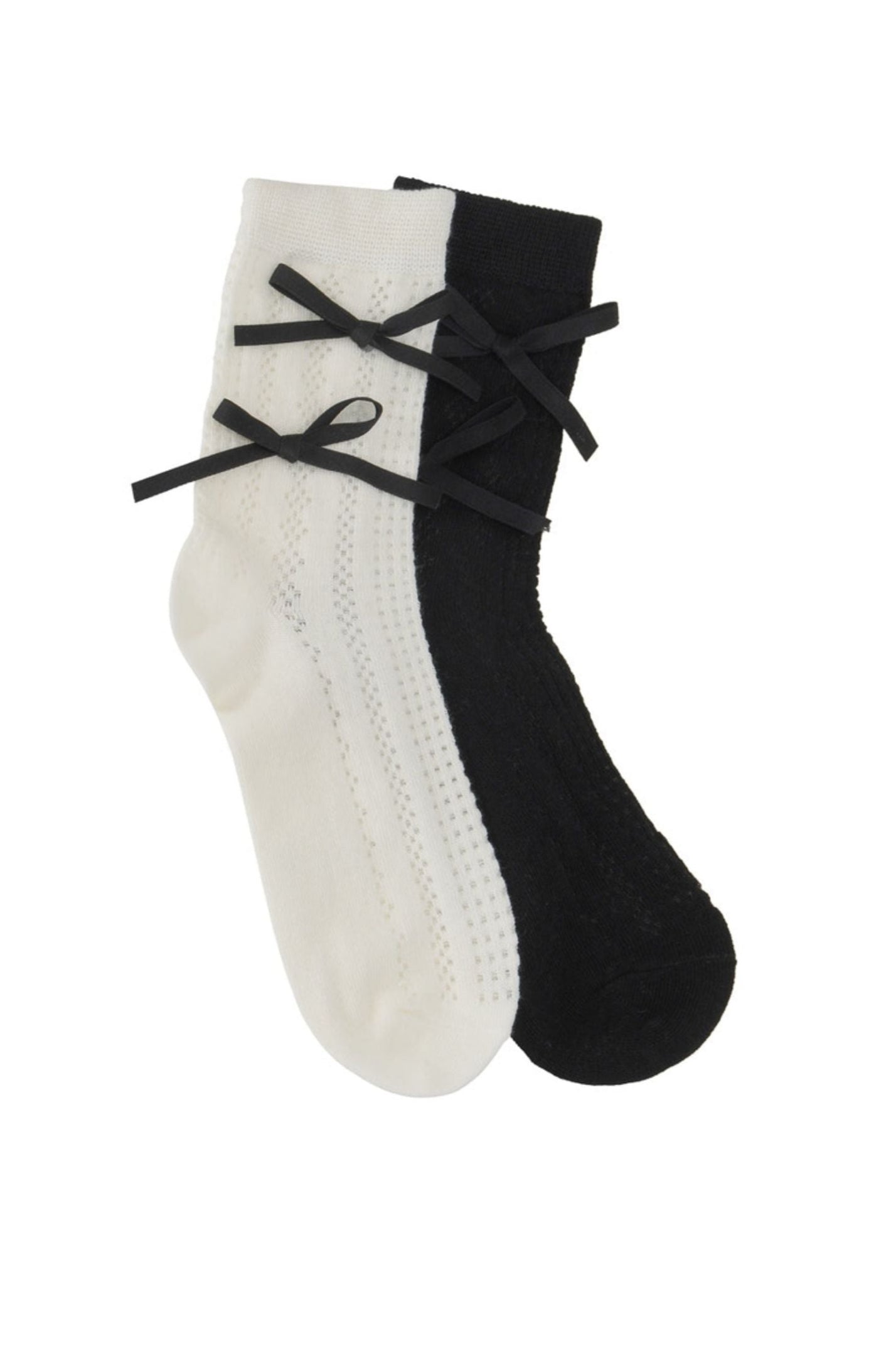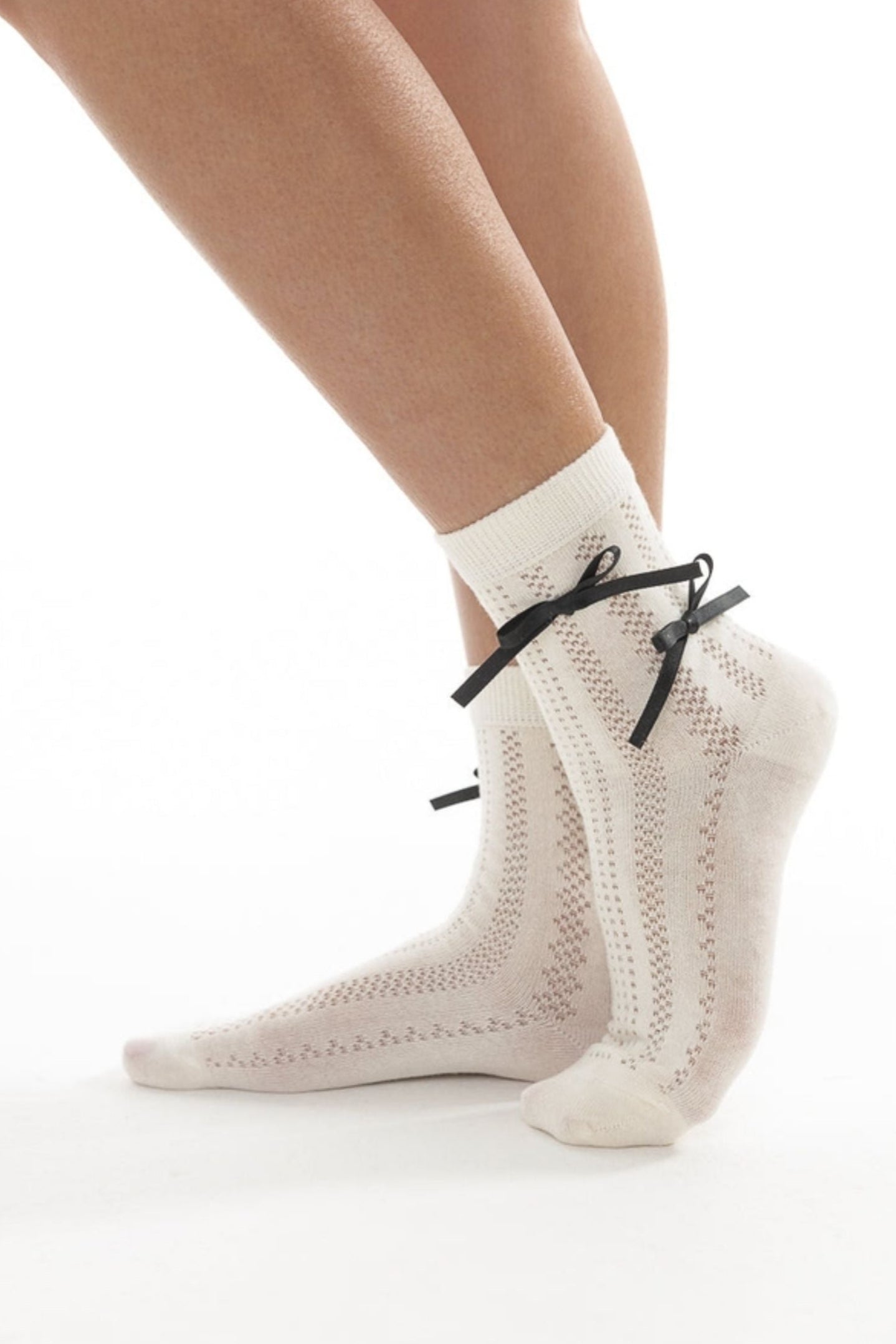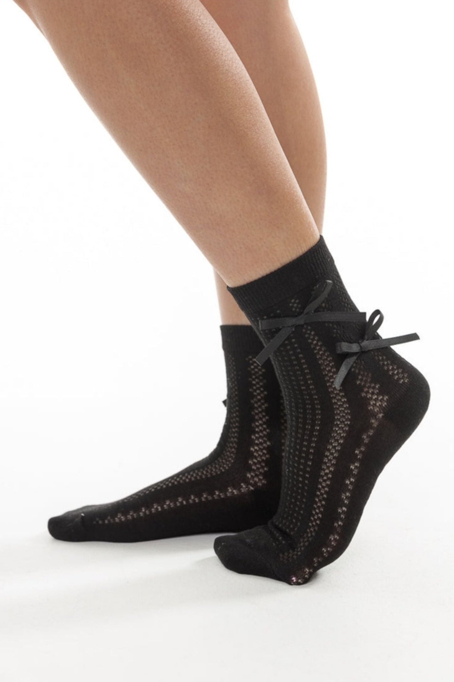 The Double Black Satin Bow Socks feature a classic cut with a decorative back. Two satin bows on each sock create a balanced, polished finish. Whether you're heading out for the day or dressing up for an evening event, these socks bring charm and comfort in equal measure.